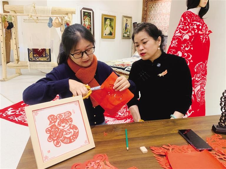 2007年,安寧剪紙被列入安寧區(qū)第一批非物質(zhì)文化遺產(chǎn)代表性項(xiàng)目名錄,2011年又成功入選蘭州市第二批非物質(zhì)文化遺產(chǎn)代表性項(xiàng)目名錄。52歲的剪紙藝術(shù)家史婷,是國(guó)家級(jí)非遺代表性傳承人。春節(jié)前夕,史婷剪紙工作室里人來(lái)人往,熱鬧非凡。她以“蛇元素”為主題,創(chuàng)作了《蛇盤兔》《雙蛇送?!返茸髌?,還有福字、掛歷、抱枕等特色剪紙作品。一把剪刀在她的手中上下翻飛,剪出了“指尖上”濃濃的年味兒。