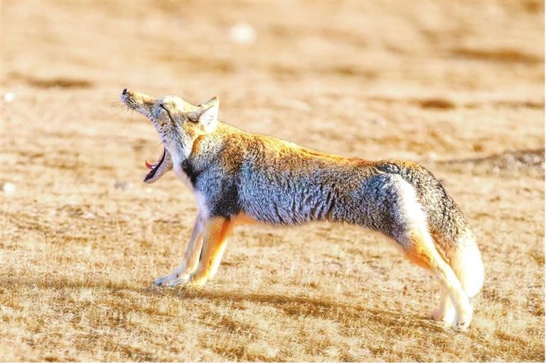 攝影師偶遇一只藏狐,它慵懶地從藏身之處緩緩走出,愜意地沐浴在春日的陽光中。它站立在草地上,伸直前后腿,將整個(gè)身體舒展成了一條優(yōu)美的弧線,隨后大大地張開嘴巴,打了一個(gè)哈欠,露出那尖銳的牙齒,那模樣既透著幾分呆萌可愛,又帶著些許野性不羈,讓人看了忍俊不禁,為這寧靜的畫面增添了一抹別樣的詼諧與趣味。