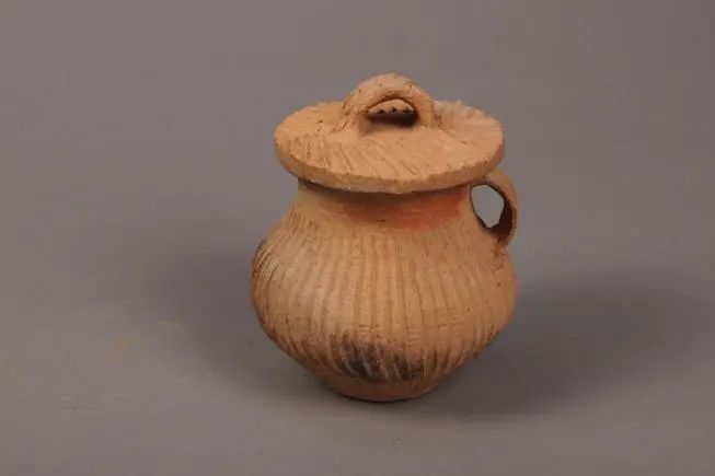 絳紋單耳紅陶蓋罐(鎮(zhèn)原縣博物館藏)