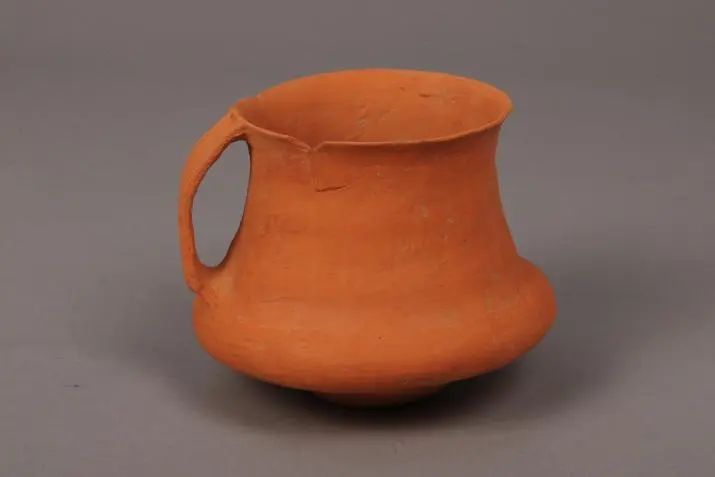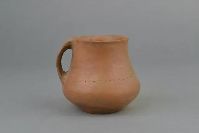 單耳折腹紅陶罐(鎮(zhèn)原縣博物館藏)