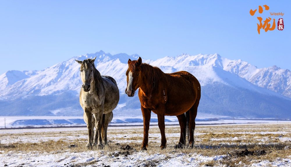 一場(chǎng)春雪后,山丹馬場(chǎng)天空湛藍(lán),祁連山巍巍壯觀(guān)。成群的駿馬在這片廣袤無(wú)垠的草原上或低頭吃草,或奔跑嬉戲,成為雪地里一道靚麗的風(fēng)景。