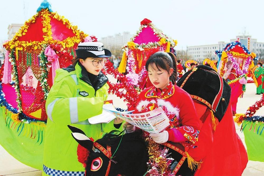 2月12日,榆中縣公安局交警大隊(duì)聯(lián)合蘭州市公安局交警支隊(duì)走進(jìn)社火演出現(xiàn)場(chǎng)開(kāi)展“美麗鄉(xiāng)村行”交通安全巡回宣講活動(dòng)。新甘肅·甘肅法治報(bào)記者王輝攝