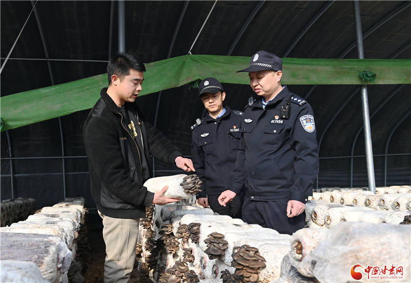 在西固區(qū)新城鎮(zhèn)青石金庭生態(tài)產(chǎn)業(yè)園,西固分局新城派出所民警宋振浩正在和蘑菇種植戶郭先生拉家常,詳細(xì)了解生產(chǎn)經(jīng)營(yíng)情況,詢問實(shí)際困難和需求。