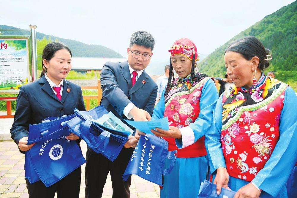 臨潭縣傳唱的“洮州花兒”與張家川縣傳唱的“張家川花兒”,將法治元素融入悠揚(yáng)山歌,積極打造貼近生活、貼近百姓的法治文化作品;在臨潭縣羊永鎮(zhèn)法治文化廣場,身著民族服飾的歌者用嘹亮的歌聲傳唱民法典,群眾跟著旋律輕哼……各族群眾在文化交融中不斷提升法治素養(yǎng)。