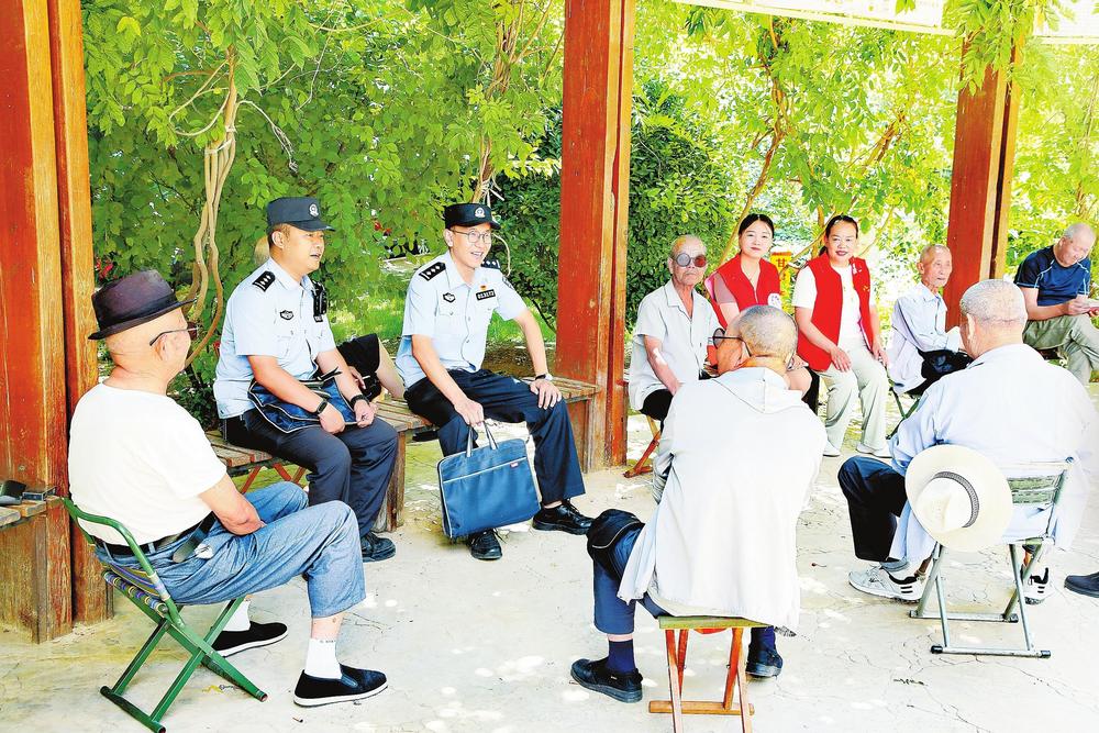 7月7日,銀灘路派出所民警聯(lián)合網(wǎng)格員主動(dòng)走訪社區(qū)群眾,開展法治宣傳、排查矛盾糾紛。