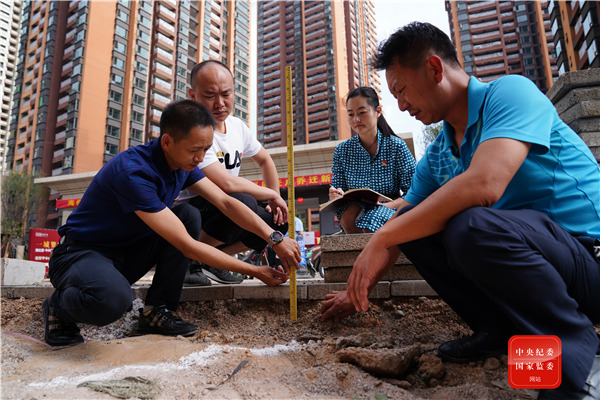 云南省昆明市西山區(qū)駐村一線紀(jì)檢監(jiān)察員對(duì)城中村改造道路施工質(zhì)量進(jìn)行督查,確保路基建設(shè)質(zhì)量,建人民滿(mǎn)意工程。(云南省昆明市西山區(qū)紀(jì)委監(jiān)委 尹彪 攝)