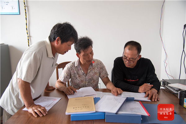廣西壯族自治區(qū)鹿寨縣鹿寨鎮(zhèn)波井村村務(wù)監(jiān)督委員會(huì)成員定期對(duì)村級(jí)黨務(wù)、村務(wù)、財(cái)務(wù)公開(kāi)情況及三重一大重要事項(xiàng)的決策等進(jìn)行監(jiān)督檢查,確保村級(jí)事項(xiàng)決策公平、公開(kāi)透明。(廣西壯族自治區(qū)柳州市鹿寨縣紀(jì)委監(jiān)委 韋娟 攝)