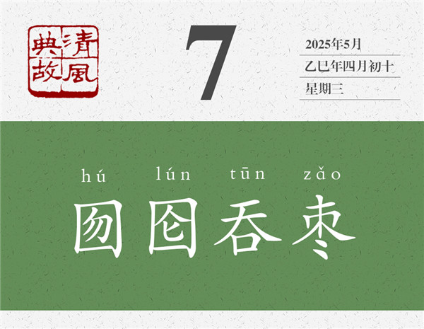 囫圇,就是完完整整的意思;把棗子完完整整地吞咽下去,就叫“囫圇吞棗”。我們常說的“囫圇吞棗”,原來是一個傻子自作聰明的“發(fā)明”。雖然完完整整地吞下了一個棗子,但嚼也不嚼,連棗核也不用吐,連棗子什么味道也不用嘗,直接就咽下去了,這是聰明之舉嗎?吃東西為什么要咀嚼,既是為了品嘗滋味、享受過程,也是為了更好地消化吸收、獲取營養(yǎng)。后世即以“囫圇吞棗”為典,比喻學(xué)習(xí)或借鑒過程中的死記硬背、照本宣科現(xiàn)象。看似據(jù)為己有了,實則只是走了個過場而已。朱自清《論詩學(xué)門徑》:“一個高中文科的學(xué)生,與其囫圇吞棗或走馬看花地讀十部詩集,不如仔仔細細地背誦三百首詩。”