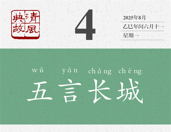 唐朝時處士、詩人秦系,與同時代的詩人劉長卿關系非常好?!缎绿茣?bull;隱逸傳•秦系傳》:“(秦系)與劉長卿善,以詩相贈達。權德輿曰:‘長卿自以為五言長城,系用偏師攻之。”權德輿,字載之,天水略陽(今甘肅省秦安縣)人,后徙潤州丹徒(今江蘇省鎮(zhèn)江市),唐朝宰相、詩人、文學家、文章家,他說的意思是:劉長卿自認為他是“五言長城”,地位牢固,堅不可摧,但秦系不與他正面交鋒,而是從側翼發(fā)起進攻,即使老了也從不懈怠。
