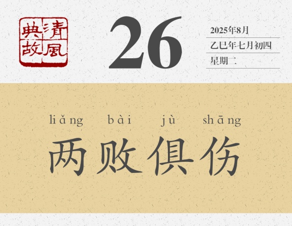 講完這個(gè)故事,陳軫言歸正傳,對(duì)秦惠王說:“今韓魏相攻,期年不解,是必大國(guó)傷,小國(guó)亡,從傷而伐之,一舉必有兩實(shí)。此猶莊子刺虎之類也。”秦惠王聽從了陳軫的建議,后來“大國(guó)果傷,小國(guó)亡,秦興兵而伐,大克之”。后世即以“兩敗俱傷”為典,比喻爭(zhēng)斗雙方都會(huì)受到損失,誰(shuí)也得不到好處,也用來形容毫無(wú)意義的爭(zhēng)斗。《新五代史•宦者傳論》:“雖有圣智,不能與謀。謀之而不可為,為之而不可成。至其甚,則俱傷而兩敗。”
