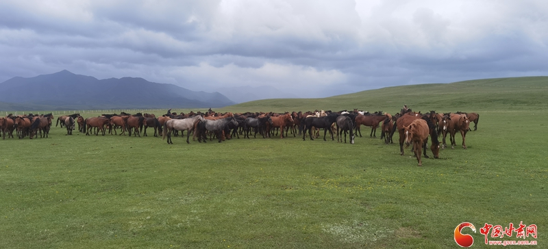6月26日下午,在山丹軍馬場(chǎng)一廠開(kāi)展參觀、采訪活動(dòng)。祁連巍巍,草場(chǎng)遼闊,西大河水庫(kù)明凈透亮。當(dāng)牧馬人趕著幾百匹各色駿馬從天邊的草坡上涌出,奔騰而來(lái)時(shí),天空風(fēng)雨聚集,雷聲大作,我們感受到了震撼人心的奮進(jìn)強(qiáng)音!可以說(shuō),這是歷代先民前赴后繼、不懈努力的強(qiáng)音,也是像路易·艾黎一樣在彩陶之路、青銅之路、玉石之路、絲綢之路上不畏艱難、勇往直前的開(kāi)拓者的強(qiáng)音,更是無(wú)數(shù)民眾默默無(wú)聞、無(wú)私奉獻(xiàn)、為人類福祉艱苦奮斗的強(qiáng)音!