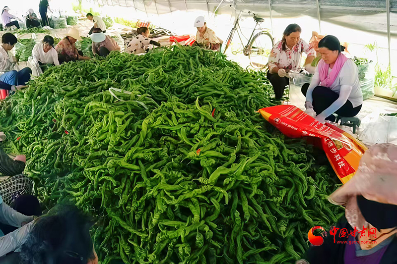 晨霧未散,涇川縣玉都鎮(zhèn)下坳村設(shè)施蔬菜園區(qū)的鋼架大棚已透出微光,雨后濕熱氣息裹挾著濃郁椒香撲面而來,一個個鮮綠的青椒綴滿了藤蔓。村民們穿梭其間,采摘、分揀、打包,一派繁忙的豐收景象。