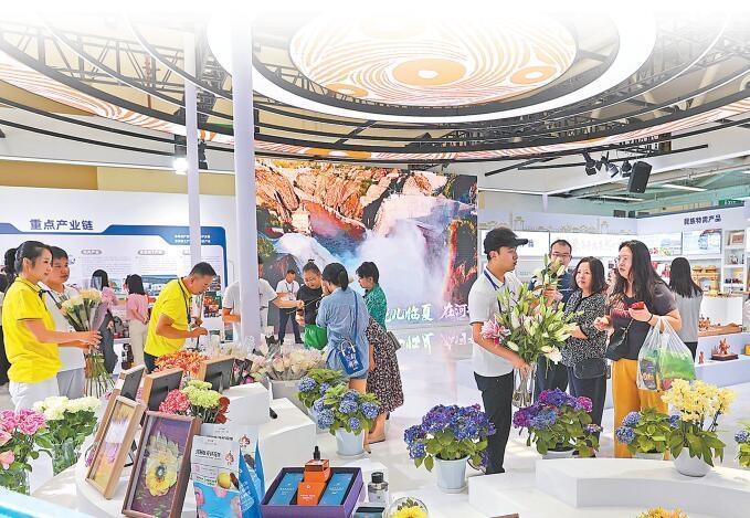 臨夏館鮮切花吸引眾多參觀者購(gòu)買。