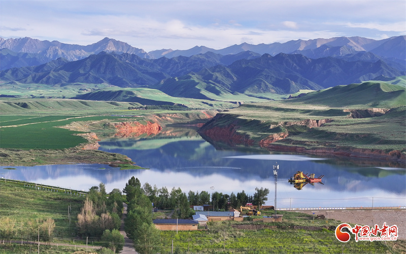 眼下,民樂縣雙樹寺水庫碧波蕩漾,與藍天白云、群山交相輝映,形成一幅水清景美的生態(tài)畫卷。