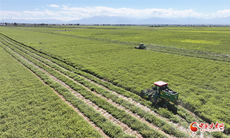 時下,在民樂縣民聯(lián)鎮(zhèn)太和村千畝茴香種植基地,種植戶利用晴好天氣,駕駛機(jī)械在田間采收茴香。