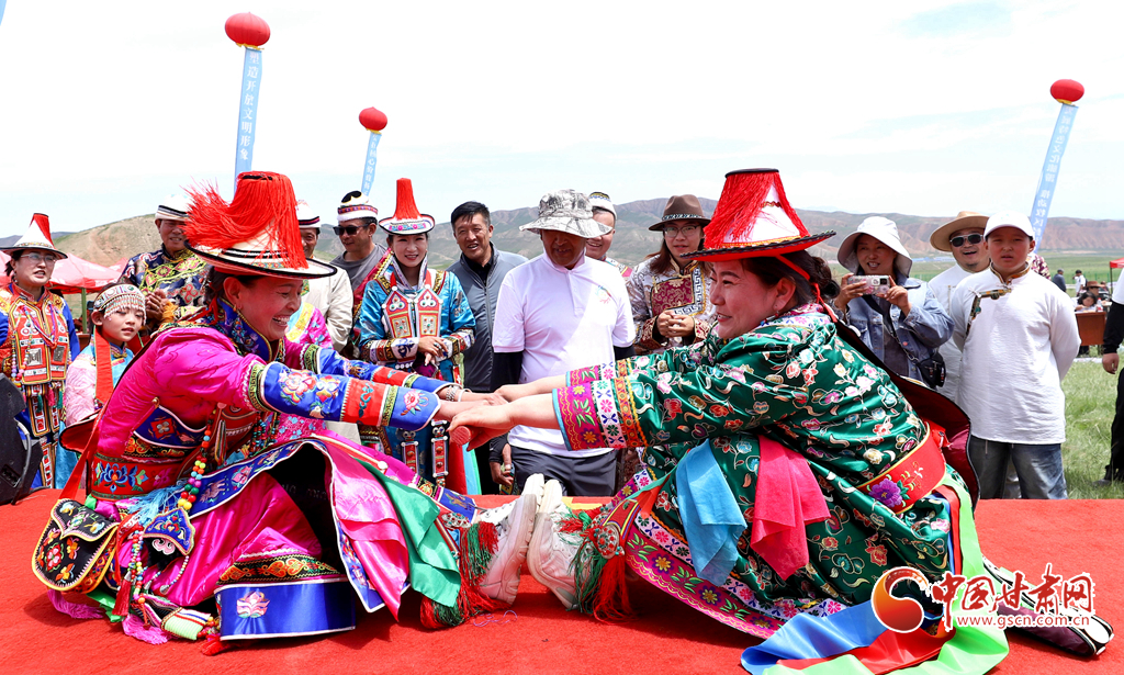 7月26日,肅南裕固族自治縣大河鄉(xiāng)“清涼大暑傳牧韻 聚力奮進(jìn)繪新篇”農(nóng)牧民文藝展演暨傳統(tǒng)體育運(yùn)動(dòng)會(huì)在神鹿公園拉開帷幕。當(dāng)?shù)剞r(nóng)牧民群眾進(jìn)行了頂杠子、拉爬牛、拔棍等民族傳統(tǒng)體育比賽,展示了織褐子、捻毛線、裕固族婚等非遺項(xiàng)目,為3000多名游客呈現(xiàn)了一場(chǎng)豐盛的民族文化盛宴。