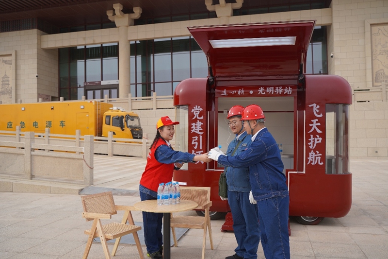 9月20日,在文博會(huì)保電現(xiàn)場(chǎng),一個(gè)特殊的服務(wù)點(diǎn)吸引了來(lái)往者的目光——該公司設(shè)立的“連心橋·光明驛站”,站內(nèi)設(shè)置免費(fèi)充電區(qū)、應(yīng)急補(bǔ)給區(qū)、臨時(shí)休息區(qū),這個(gè)由國(guó)家電網(wǎng)甘肅電力(飛天)連心橋共產(chǎn)黨員服務(wù)隊(duì)和“黃河之濱”志愿者服務(wù)隊(duì)組成的服務(wù)站點(diǎn),在這場(chǎng)文化盛會(huì)中發(fā)揮著重要作用,為各方來(lái)賓和市民游客提供全方位的貼心服務(wù),成為文博會(huì)上一道亮麗的風(fēng)景線。