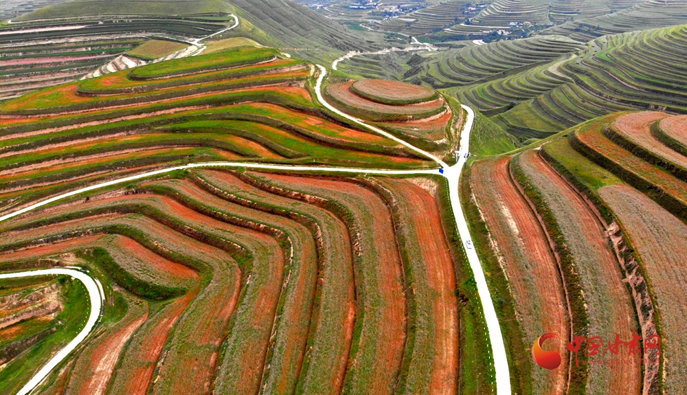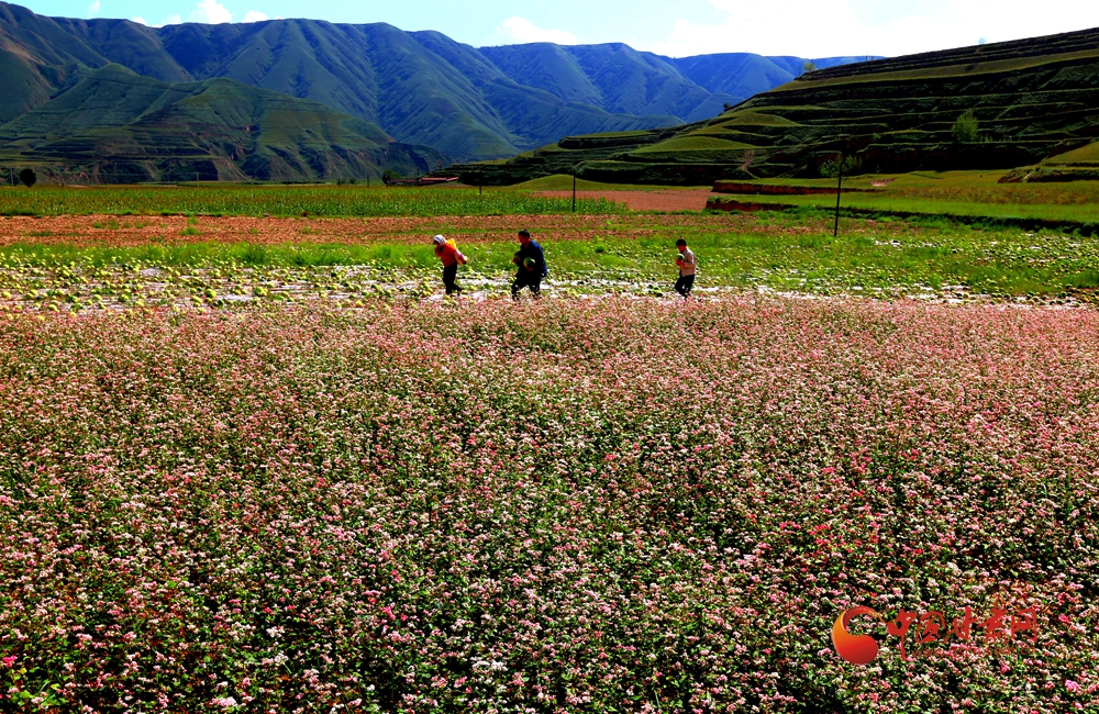 初秋時(shí)節(jié),會(huì)寧柴家門(mén)鎮(zhèn)樊郭村正值盛花期的百畝蕎麥競(jìng)相綻放,層層花浪隨風(fēng)起伏,清甜芬芳縈繞間蜂飛蝶舞,繪就一幅生機(jī)盎然的秋日畫(huà)卷。這片絢麗的梯田花海,不僅是當(dāng)?shù)?ldquo;以秋補(bǔ)夏、以復(fù)種促增收”戰(zhàn)略的生動(dòng)注腳,更是土地孕育豐收的希望詩(shī)篇。