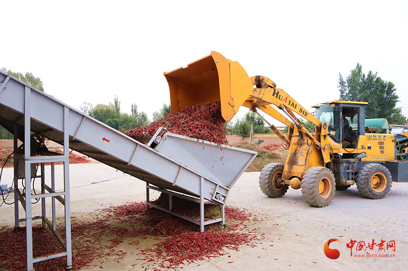 在臨澤景誠(chéng)農(nóng)業(yè)發(fā)展有限公司的辣椒加工廠(chǎng)內(nèi),記者看到晾曬場(chǎng)上的辣椒鋪成“火紅”一片;廠(chǎng)房里,辣椒色選機(jī)、剪把機(jī)高速運(yùn)轉(zhuǎn),工人們分工協(xié)作,加工現(xiàn)場(chǎng)繁忙而有序。
