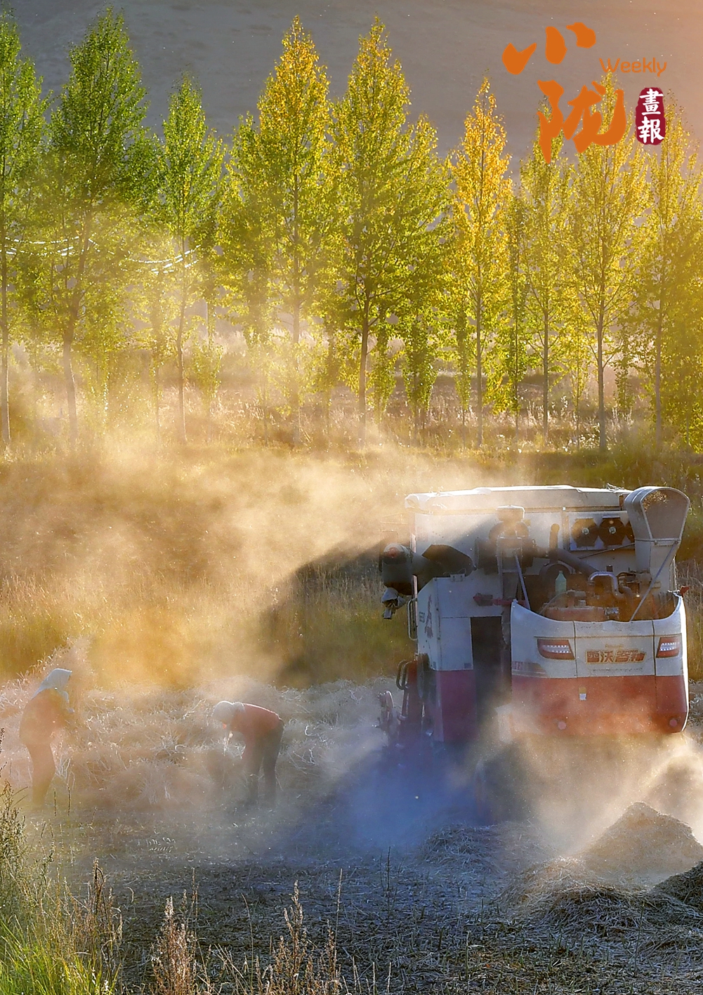 在秋風的洗禮下,田野間一臺臺收割機來回作業(yè),機器的轟鳴聲、農民們的歡笑聲回蕩在農田上空。他們在這片土地上播撒希望,耕耘夢想,用那雙粗糙而有力的雙手,書寫著屬于他們自己的豐收篇章。