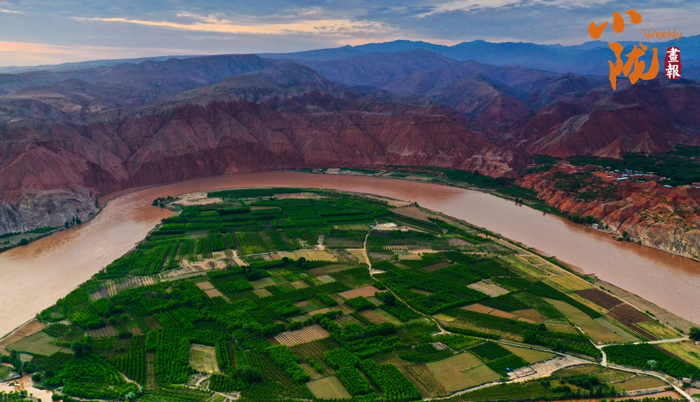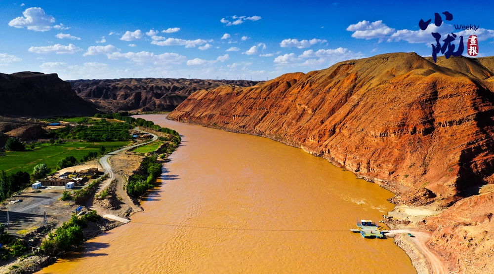 沿著黃河岸邊望去,大片綠色田園如翡翠般鑲嵌在廣袤曠野之中。阡陌縱橫間,莊稼隨風(fēng)搖曳,為蒼涼的河谷增添了一抹靈動(dòng)的柔情。遠(yuǎn)處的村落、搖曳的蘆葦、穿梭的飛鳥,與紅山碧水共同繪就了一幅層次豐富的山水畫卷?!?/p>