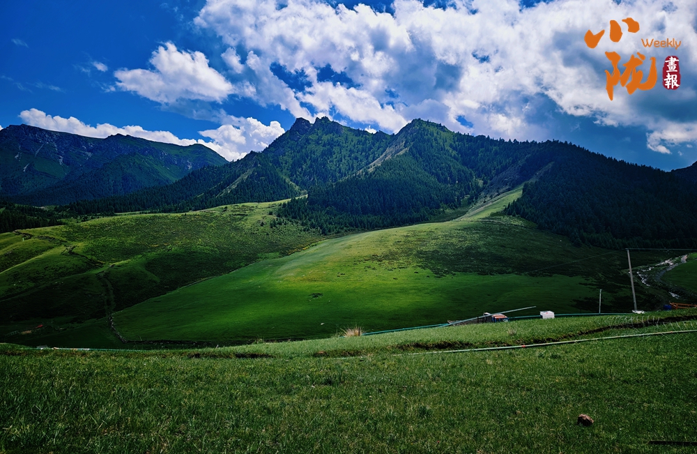 在起伏的丘陵間,草原宛如少女柔美的曲線。站在草原之上,遠處是終年不化的雪山,腳下是綿軟的草地與盛開的鮮花,藍天下白云悠悠,微風吹過,濃郁的花香撲鼻而來,讓人沉醉其中,舍不得離開。