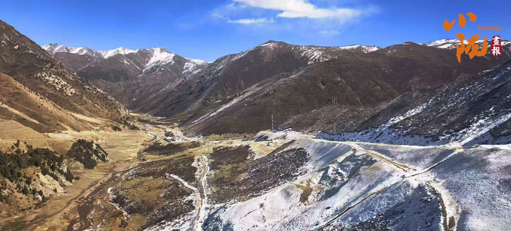 藍(lán)天澄澈如洗,雪山在陽(yáng)光下泛著冰清的素白,腳下草原鋪展成遼闊的金黃,盡現(xiàn)西北大地獨(dú)有的蒼茫和寬廣,漫過(guò)視野,別具風(fēng)情。