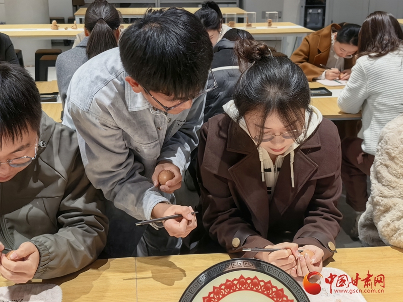 第一期非遺傳承公益課隨之拉開帷幕,非遺傳承人積極發(fā)揮傳幫帶作用,手把手用情傳授“蛋雕技藝”,青年學(xué)員們用心感受刻刀舞動在蛋殼上的文化痕跡,讓非遺技藝綻放出青年對非遺的熱愛,讓青年在沉浸式體驗“活”著的非遺中,堅定文化自信、激發(fā)創(chuàng)造熱情。