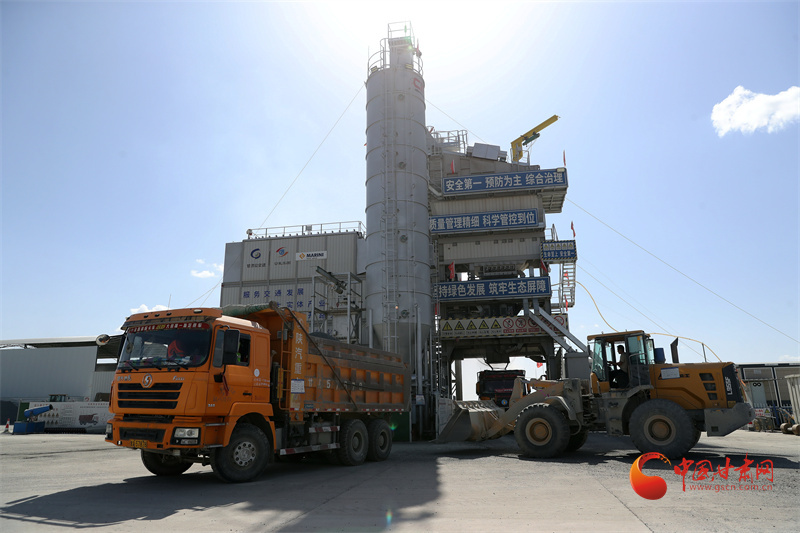 盛夏時節(jié),戈壁熱浪滾滾,路面攤鋪更加繁忙,瀝青拌合站火力全開,保障路面作業(yè)。