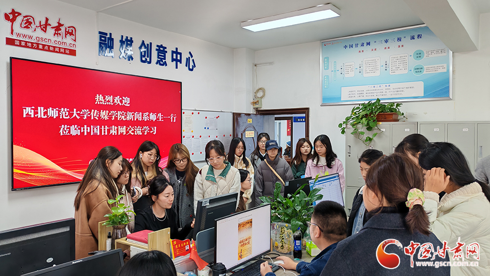 活動中,西北師范大學傳媒學院師生一行參觀了中國甘肅網的辦公區(qū)域,詳細了解了網站的發(fā)展歷程與建設成果。通過觀看中國甘肅網宣傳片,師生們對網站的媒體融合發(fā)展情況有了更為直觀的認識。此次參觀不僅拉近了學子與媒體實踐的距離,也為他們提供了將課堂所學與行業(yè)實際相結合的重要契機。