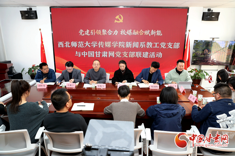 中國甘肅網11月14日訊(西北角·中國甘肅網記者 任磊)11月14日上午,西北師范大學傳媒學院新聞系教工黨支部與中國甘肅網黨支部共同開展了以“黨建引領聚合力 校媒融合賦新能”為主題的聯建活動?;顒釉诰W站智慧黨建甘肅紅云平臺體驗中心舉行,雙方圍繞黨建工作、媒體融合及人才培養(yǎng)等議題展開深入交流,共同探索黨建引領下校媒合作的新路徑。