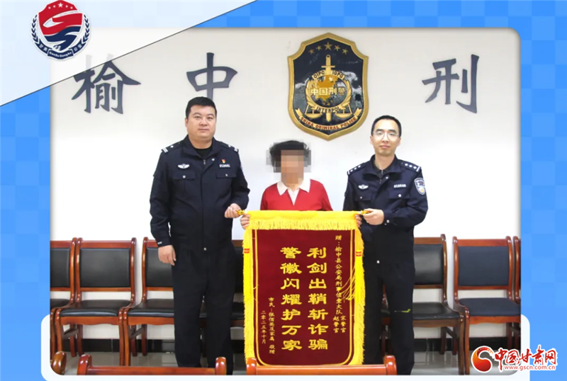 中國(guó)甘肅網(wǎng)11月3日訊(西北角·中國(guó)甘肅網(wǎng)記者 程?。┙眨m州市的張女士將一面印有“利劍出鞘斬詐騙 警徽閃耀護(hù)萬(wàn)家”的錦旗,送到了榆中縣公安局刑警大隊(duì)辦案民警手中。