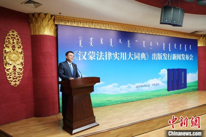 圖為《漢蒙法律實用大詞典》新聞發(fā)布會現場?!±類燮健z