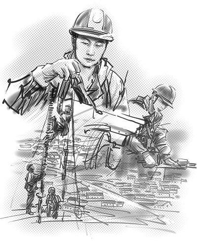 就個(gè)人條件而言,胡洪煒一米八的身高其實(shí)并不適合帶電作業(yè),但三年軍營(yíng)練就的結(jié)實(shí)精壯以及先天的敏捷機(jī)靈完美地補(bǔ)充了身高的短板。多年之后,閆旭東依然清晰地記得徒弟曾經(jīng)帶給他的震撼。帶電作業(yè)兩大危險(xiǎn),一是高空,一是帶電。軟梯是電力人得以騫翮遠(yuǎn)翥的依傍,可攀爬軟梯卻一度打濕了胡洪煒振翅欲飛的翅膀。新員工入職培訓(xùn)的訓(xùn)練場(chǎng)上,別人用一個(gè)月已經(jīng)熟練掌握了技巧,笨鳥胡洪煒卻剛剛及格。氣喘吁吁地爬到基塔的頂端,將自己蟄伏在離地面幾十米高的電線上,想像自己是一只俯瞰大地的鳥雀,一只暫時(shí)休整的雨燕,抑或是被印刷在音樂(lè)課本上的音符。音符在胡洪煒耳邊輕聲吟唱:我要飛得更高,更高!