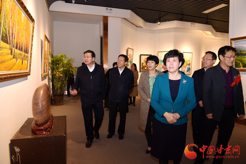 省委宣傳部、省文明辦、省直機(jī)關(guān)工委、省國(guó)資委、省文旅廳、省文史館、省文聯(lián)、省扶貧辦、省人社廳和定點(diǎn)幫扶鎮(zhèn)原的讀者出版集團(tuán)等省直部門負(fù)責(zé)人,鎮(zhèn)原縣委副書記張笑陽,縣委常委、宣傳部長(zhǎng)賈翠艷,知名書畫家、慶陽籍在蘭各界人士共計(jì)600余人參觀展覽。