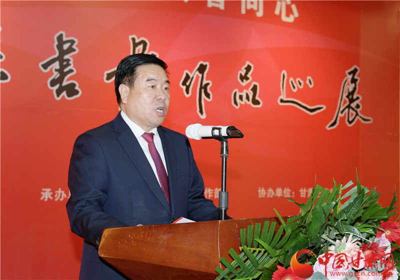 王登渤在致辭中說,素有“書法之鄉(xiāng)”的鎮(zhèn)原,歷史文化悠久。書法、繪畫興始漢代,盛至清末,而喜好書畫之風(fēng)則歷史更久。在歷代書畫家的精心耕耘下,鎮(zhèn)原凝聚起一股濃郁的習(xí)書作畫的藝術(shù)氣息。經(jīng)過百余年的傳承與發(fā)展,如今的鎮(zhèn)原書畫之風(fēng)盛行,無論城鎮(zhèn)鄉(xiāng)村、大家小戶,貼字掛畫蔚然成風(fēng),涌現(xiàn)出的一大批書畫名流,猶若星辰,遍布于全國(guó)各地。作為一個(gè)縣,此次能在蘭州舉辦書畫巡展,藝術(shù)水準(zhǔn)很高,充分展示出鎮(zhèn)原縣“中國(guó)書法之鄉(xiāng)”的深厚文化內(nèi)涵和鎮(zhèn)原縣書畫家們的才情智慧和藝術(shù)品格,也全面展示了鎮(zhèn)原發(fā)展變化的嶄新面貌。希望鎮(zhèn)原縣繼續(xù)加大扶持發(fā)展書畫事業(yè),持續(xù)提升鎮(zhèn)原書畫藝術(shù)發(fā)展水平,也希望涌現(xiàn)出更多的書畫藝術(shù)家,為繁榮當(dāng)?shù)匚乃囀聵I(yè)、助力脫貧攻堅(jiān)、美麗鄉(xiāng)村建設(shè)作出應(yīng)盡的貢獻(xiàn)。