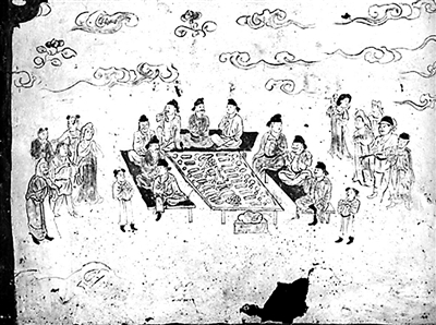 唐代壁畫(huà)《宴飲圖》?。ǘ鼗湍呖撸?/font>