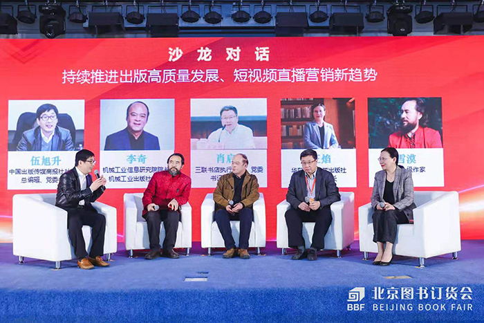 沙龍對(duì)話(huà)環(huán)節(jié)中,生活·讀書(shū)·新知三聯(lián)書(shū)店總編輯肖啟明,機(jī)械工業(yè)信息研究院院長(zhǎng)、機(jī)械工業(yè)出版社社長(zhǎng)李奇,華東師范大學(xué)出版社董事長(zhǎng)、社長(zhǎng)王焰,國(guó)家一級(jí)作家雪漠,共同探討短視頻直播營(yíng)銷(xiāo)心得、經(jīng)驗(yàn)及趨勢(shì)。
