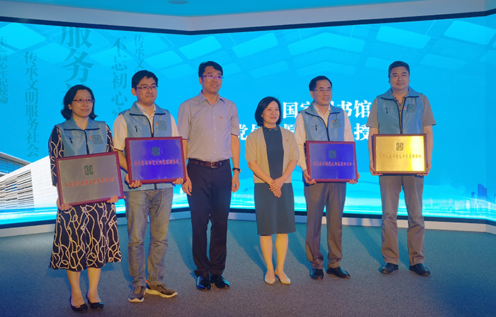 6月8日上午,國家圖書館新閱讀空間開放暨黨員志愿服務(wù)總隊(duì)成立活動在國家圖書館總館北區(qū)舉行。活動現(xiàn)場,國家圖書館黨委書記、副館長魏大威,國家圖書館副館長、黨委副書記陳櫻為4支黨員志愿服務(wù)分隊(duì)代表授牌。