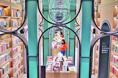 讀者在山東煙臺市鐘書閣書店讀書。唐克攝/光明圖片