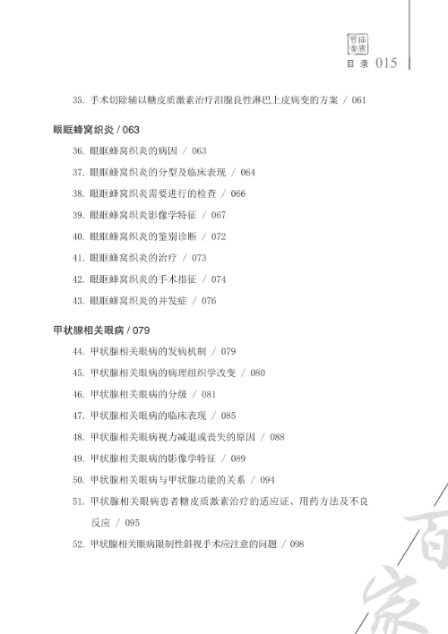 全書主要介紹了常見眼眶炎性疾病及甲狀腺相關(guān)眼病,從病因、病理、臨床表現(xiàn)、輔助檢查、診斷、鑒別診斷、治療及預(yù)后等多個方面對其加以敘述。本書條理清晰,簡明扼要,理論性強(qiáng),有較強(qiáng)的臨床實用性和指導(dǎo)意義。