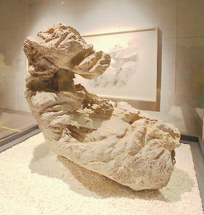 展廳中一塊奇石吸引了記者的目光。王子林介紹,此石為靈璧石,因石“如天風(fēng)遏云抱崖綺布之勢”,取酈道元《水經(jīng)注》中“造云壁立”而命名,“造云”二字刻于石額間。造云石原為元代蘇州玉山草堂主人顧瑛所藏,石上題刻記述了元至正十年(1350年)秋以賞石為主題的雅集盛事。此石后來進(jìn)入紫禁城,陳設(shè)于建福宮惠風(fēng)亭西北隅。