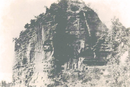 望著眼前的美景,張大千拿起照相機,按下快門,將美麗的瞬間留于永恒,在底片上留下了麥積山的無限魅力,給人以強烈的視覺沖擊力。