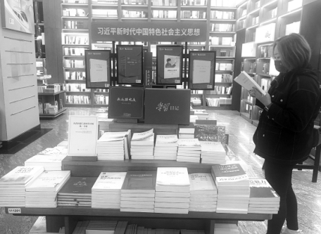 北京王府井書店設(shè)立主題出版類圖書展臺。