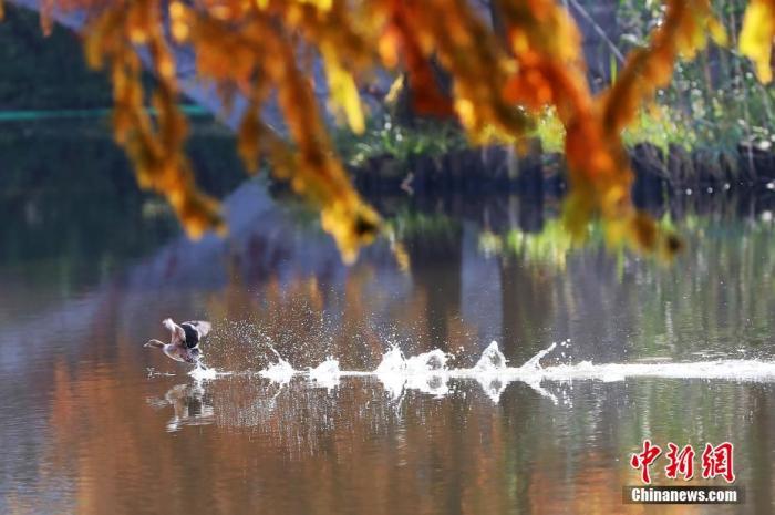 資料圖:南京燕雀湖景致。燕雀湖位于南京紫金山梅花谷南側(cè),種植大量落羽杉、池杉、水杉等色葉樹種,每到初冬時(shí)節(jié),湖畔風(fēng)景如畫。 中新社記者 泱波 攝