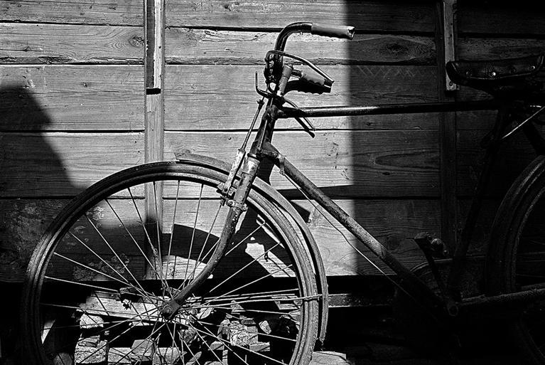 騎車的瘋狂一般是在母親因生氣而刺耳的點名聲中結束的。母親們在田間勞作一天,回家又操持半晌廚房,早就消磨光了身體里所有的精力與耐心,最后不得不靠燃燒怒火的力量來召喚我們?nèi)コ燥?。那天是我剛學會“掏雀兒”不久,自行車一路搖晃,一路飛駛,便不可避免地沖進了門外的那個大灰坑里。顧不得一嘴的炕灰,顧不得小腿鉆心的疼,一骨碌爬起來看車子。車子的鏈條卻轉不動了,連接腳踏的曲柄摜歪了,靠在平叉上。在父親的怒吼聲里,拇指粗的鞭把子狠疾地落在尻子上,那身上唯一的一處厚肉上瞬間隆起了同樣拇指粗的鼓棱,鉆心地疼痛刺激著淚腺,試圖用可憐的淚水減緩火辣辣的疼感。晚上才發(fā)現(xiàn)一條褲腿也被撕了個大口子,讓疲憊得連睜眼皮都吃力的母親又是一頓罵。也不怪父親的暴怒,當時的自行車可是家里的一位重要成員。對,它不是工具,是成員,就像一頭?;蛞黄ヱR。它不僅僅是馱著父親、哥哥姐姐們?nèi)ヌ锢飫谧?,在歉收的年景,它還是父親最忠實的伙伴,馱著父親到處為家里的七八張嘴跑生活。
