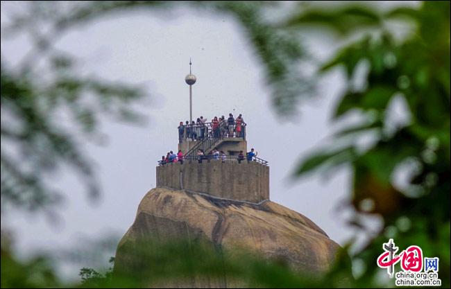 說(shuō)到自然風(fēng)光,便不能不提日光巖——這島上的最高峰。日光巖別名“晃巖”,相傳1641年,鄭成功來(lái)到此地,見此地風(fēng)景勝過(guò)吉林日光山,便把“晃”字拆開,稱之為“日光巖”。要登臨此巖,一窺日光,便要辛勞走一段山路。其間渾圓的巨石層出不窮,蒼郁的古樹隨處可見,更有閩南大厝、名人題字與這些自然風(fēng)景相得益彰。于是游人往往在心曠神怡中,路過(guò)“九夏生寒”“鷺江龍窟”,經(jīng)由“閩海雄風(fēng)”“古避暑洞”,不知不覺(jué)間,來(lái)到巖頂?shù)钠脚_(tái)。立定此處,憑欄遠(yuǎn)望,只見輕靈的云天近在咫尺,島上的屋宇盡收眼簾——別提有多么愜意!難怪有詩(shī)人寫道:“一葉輕舟破霧霾,波濤滾滾此登臺(tái)。日光巖上憑欄望,隔岸清風(fēng)過(guò)海來(lái)。”(陳仁德句)
