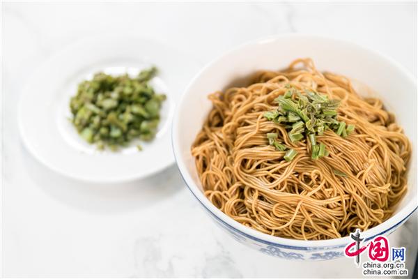 香椿頭拌面,正當(dāng)季的香椿頭整理一番切成細(xì)末,坐鍋上灶小火慢慢熬香,搭配瀝干裝碗的蘇式細(xì)面,將蔥油香椿末挖一大勺蓋上拌著吃……
