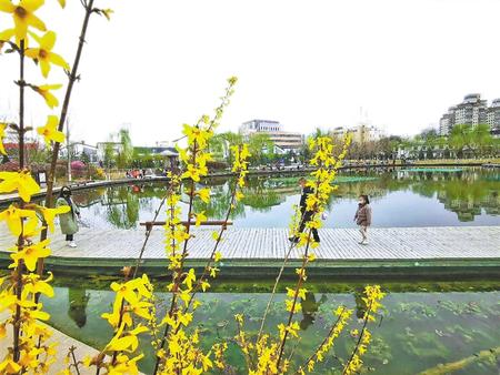 四月春日,五彩繽紛。小西湖公園里,迎春花、桃花等競相開放,引來蜜蜂、蝴蝶穿梭其中,微風拂過,飄來陣陣花香。清澈的湖水,嫩綠的草地,公園內四處皆有春天的顏色。
