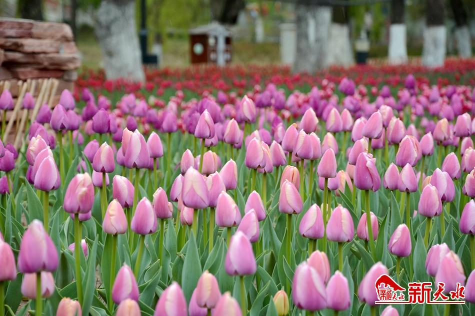 在經(jīng)歷了一個(gè)漫長(zhǎng)的嚴(yán)冬之后,馬跑泉公園的25萬余株郁金香和5萬余盆各類時(shí)令鮮花在麥積大地上郁郁蔥蔥的綻放著。